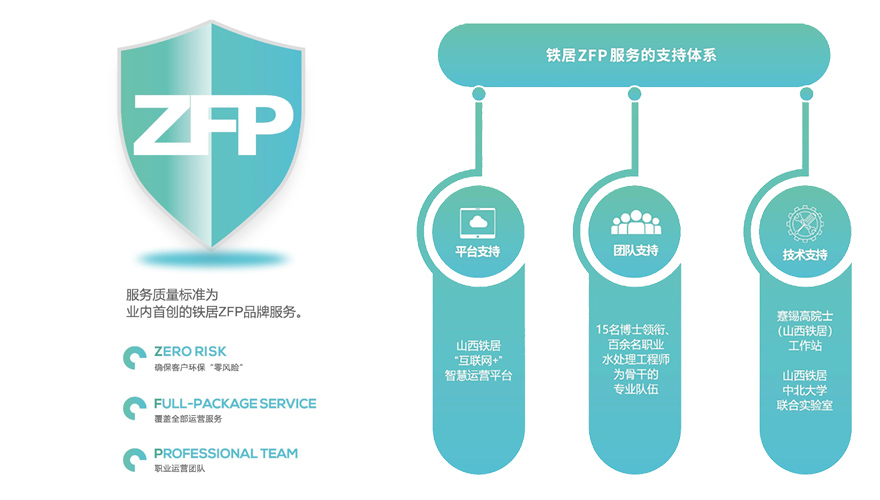 憑籍(ji)突出的(de)技術優(you)勢(shi)、成(cheng)熟的(de)專業團(tuan)隊和先進的(de)遠程(cheng)平臺,打造出煤(mei)礦水處理運營獨具特色的(de)ZFP服(fu)務(wu)包( Zero Risk--確保(bao)客戶環保(bao)“零風險”;Full-Package Service--涵蓋運營項目的(de)全部服(fu)務(wu);Professional Team--職業運營團(tuan)隊)。